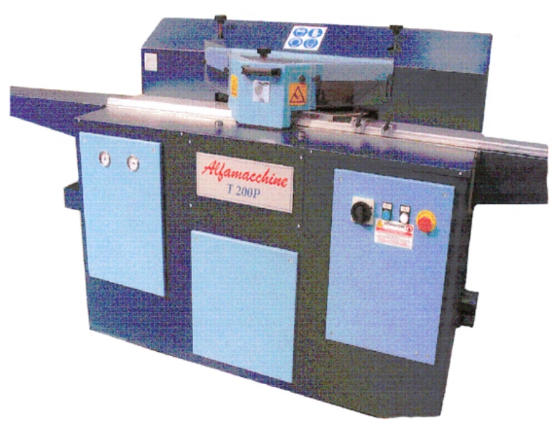 Двухдисковая пила Т 200 служит для отреза багета из дерева и МДФ под углом 45 °. Максимальные измерения отреза багета: ширина 200 мм, высота до 95 мм. Такая большая ширина отреза достигнута благодаря применению горизонтального движения пилы Ø 300 мм. Отрез пилы осуществляют поочередно. Во время отреза багет фиксируется двумя вертикальными пневматическими дотискамы.